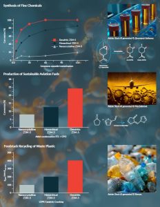 These properties open the door to a wide variety of applications where other versions of ZSM-5 fail to deliver significant results. To date, dendritic ZSM-5 zeolites have shown outstanding performance in catalytic applications that involve processing or the production of bulky molecules, such as for low-density polyethylene cracking, for waste plastic feedstock recycling, aldol condensation reactions to produce precursors of sustainable aviation fuels, limonene epoxide isomerisation to yield intermediates for fine chemicals and in the methane decomposition for hydrogen generation. In addition, this material has proven to be an interesting adsorbent of volatile organic compounds (VOCs). The performance of dendritic ZSM-5 in these relevant applications far surpasses those achieved by conventional reference materials.