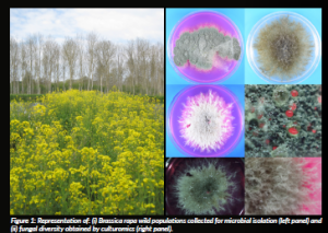 Figure 1: Representation of: (i) Brassica rapa wild populations collected for microbial isolation (left panel) and (ii) fungal diversity obtained by culturomics (right panel).