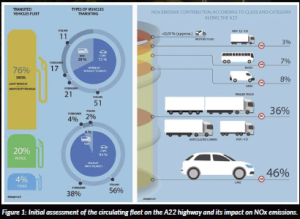Figure 1: Initial assessment of the circulating fleet on the A22 highway and its impact on NOx emissions.