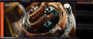 Close-up of electric motor components with copper wiring and magnetic coils.