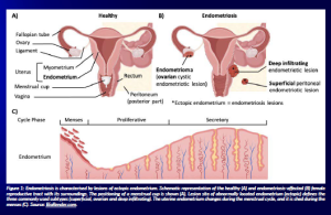 Endometriosis is a common gynaecological disease defined by the presence of lesions of functional endometrial tissue outside the uterine cavity (ectopic endometrium). It affects approximately 10 per cent of women in their reproductive years (from puberty to menopause).