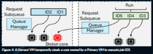 Figure 4: A Harvest VM temporarily steals a core owned by a Primary VM to execute job ID5.