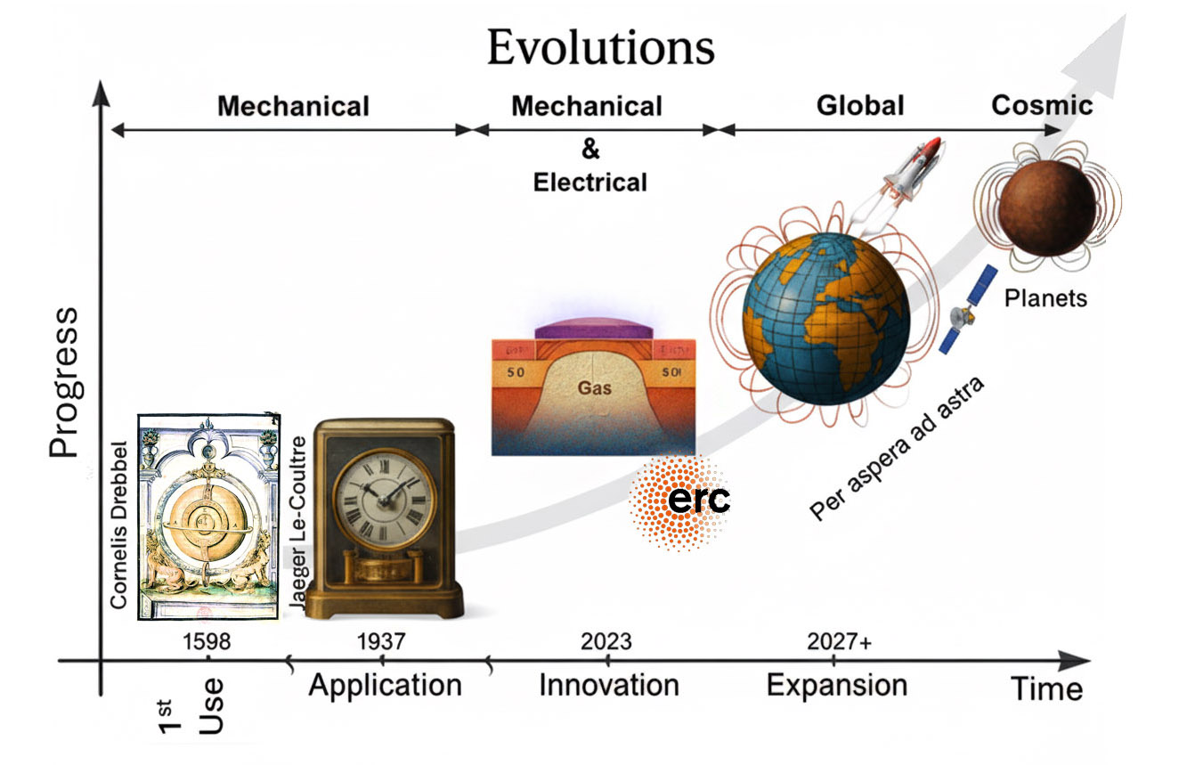 This idea is much older than modern electronics. Over 400 years ago, the Dutch inventor Cornelis Drebbel designed a remarkable device called the Eltham Perpetuum clock. It required no winding and ran continuously using only the natural fluctuations in temperature and pressure in the surrounding air. A later development, the Beverly Clock from 1864, has been running for over 150 years without anyone resetting or powering it. These inventions proved that atmospheric tides can power mechanical devices indefinitely. However, they were large, mechanically complex, and limited to moving gears and clock hands. For centuries no technology existed to miniaturize the concept, integrate it into electronics, or convert environmental energy into electrical power at small scale.